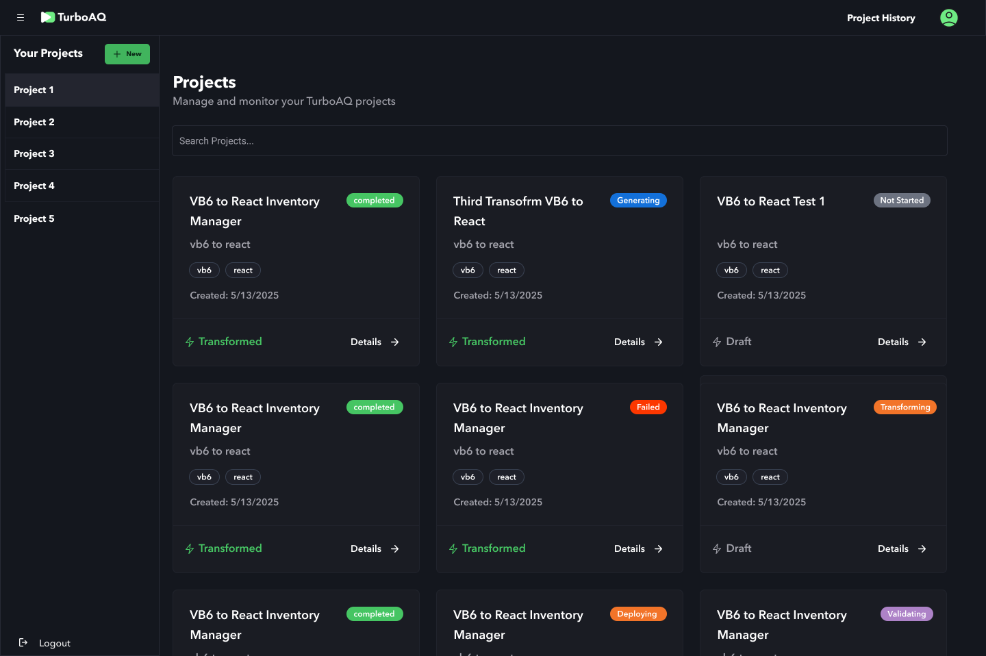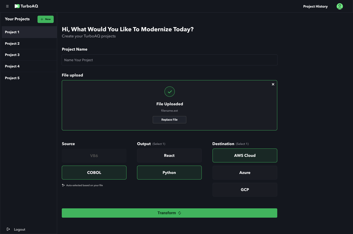 TurboAQ needed to prove the speed and value of AI-led modernization within a matter of weeks - not months. The sprint required rapid alignment across design, engineering, and leadership to turn a conceptual framework into a tangible, credible product that could be demoed to enterprise clients.